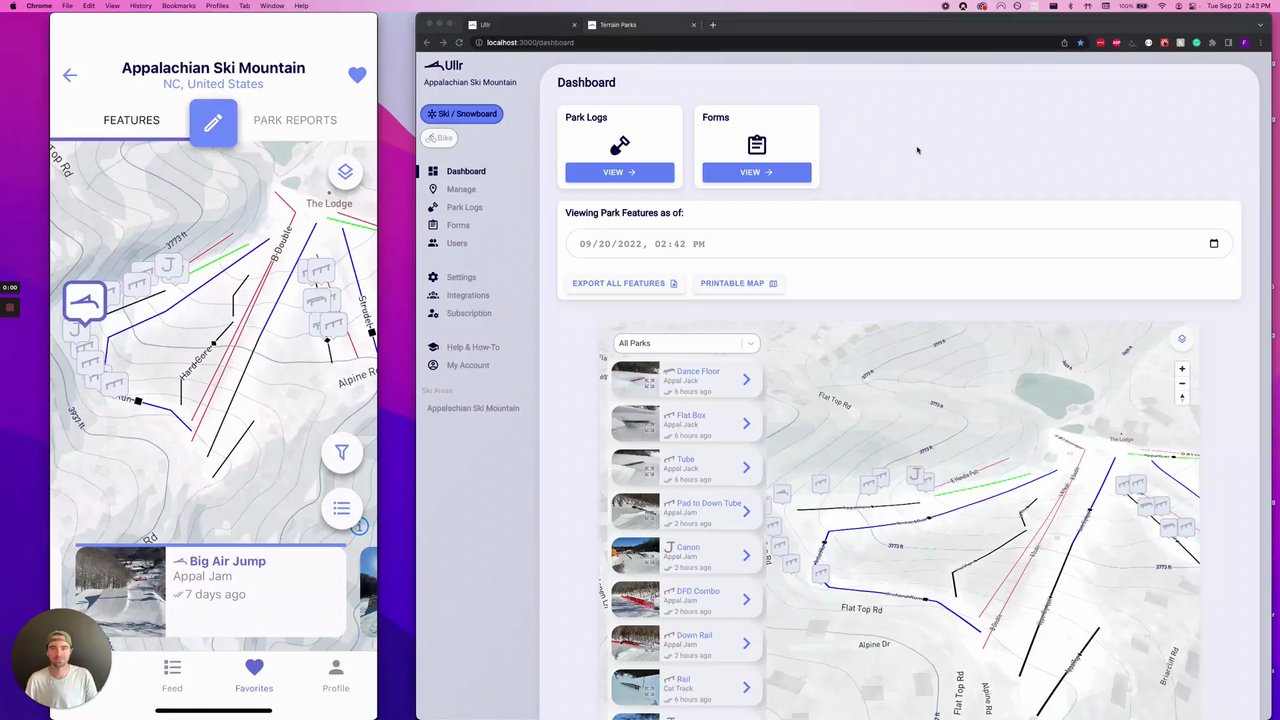 Keep guests stoked and informed. Embed real-time park maps into your website, share on social media, or power your custom reporting with the Ullr API. Update automatically as you do your documentation.